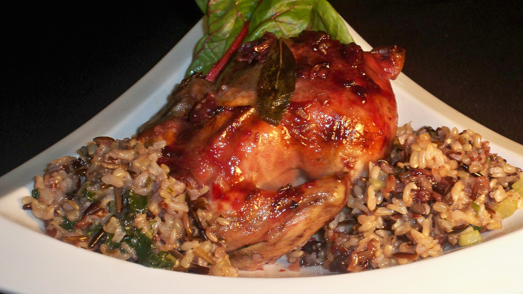 Wild Rice Stuffed Cherry Glazed Game Hen