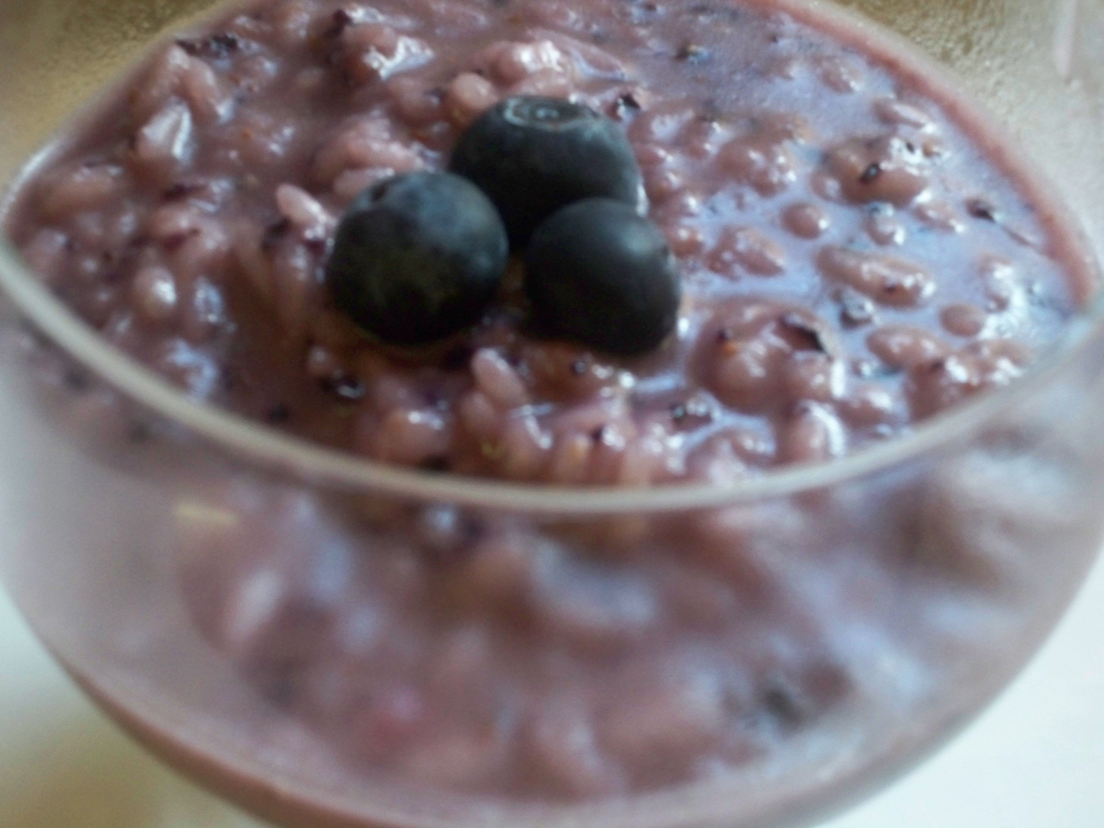 Heat the vegetable or chicken stock and set aside. In a saute pan, add red wine and rice. Cook on medium and gently stir the rice until the wine has almost been absorbed. Add one ladle-ful of stock and continue to stir. When the liquid has almost been absorbed, add another ladle-ful of stock. Continue this process until approximately 4-5 cups of stock have been used. The rice should be “al dente” and creamy, not mushy. If the rice is too firm, add more stock until you reach the desired firmness. At this point, add the pureed blueberries, salt and brie and stir until the cheese has completely melted. Serve immediately. Serves 6.