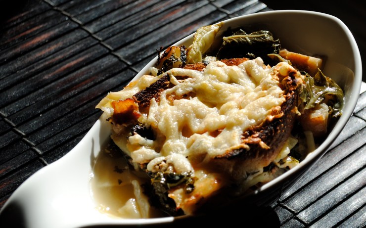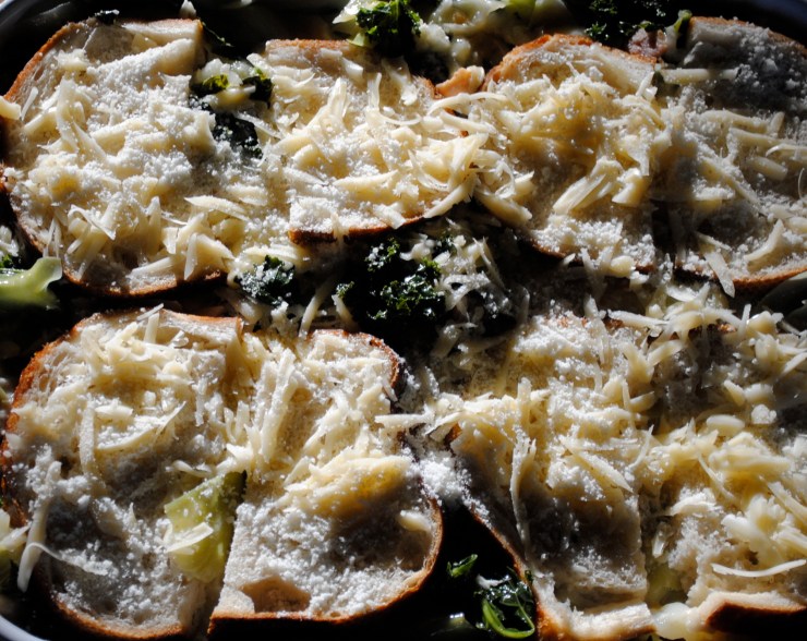 CHEESY BREAD, CABBAGE & KALE SOUP