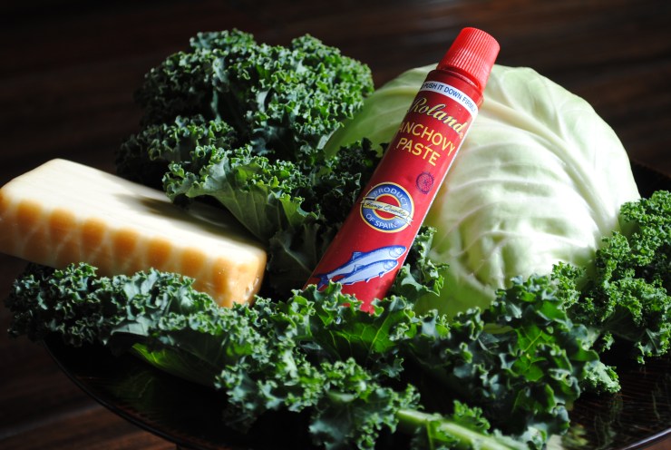 This is Jamie Oliver’s Recipe for Italian Bread and Cabbage Soup with Sage Butter.  It is comforting and filling, and perfect for a winter’s night.  I made very few changes to the recipe.  I used anchovy paste instead of fillets, which I added after the bacon was adequately cooked.  After all the cheese (I’m sure I used more than the recipe called for) I could not bring myself to add butter on top of it all.  I’m sure it would have been lovely but I can assure you it was delicious without the butter.